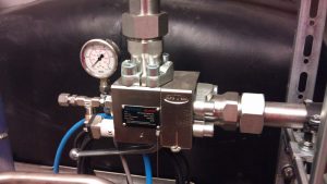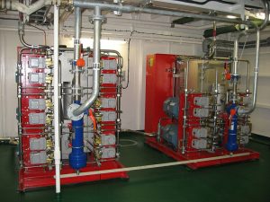The water mist consists of extremely small droplets of water. The diameter of a droplet of water mist is approx. 50 µm. Under high pressure (> ۳۵ bar), extinguishing water is compressed through the stainless steel pipes to the extinguishing nozzles. Water mist is produced through the special design of the nozzles. The necessary pressure is generated through high-pressure pumps or alternatively through pressurised gas cylinders (nitrogen).